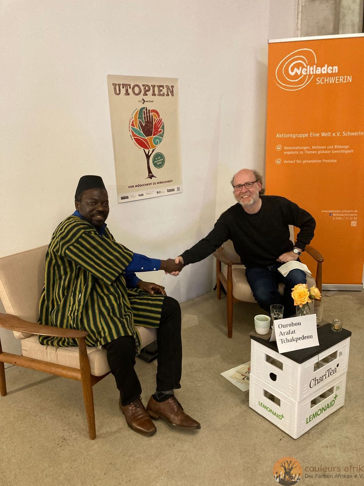 Einer der vier ausgezeichneten Vereine aus ganz Mecklenburg-Vorpommern und Hamburg ist der Verein Couleurs Afrik-die Farben Afrikas e.V. aus Schwerin. „Was sich doch aus einer kleinen Initiative im Laufe von zehn Jahren entwickelt hat: Zwei großartige Projekte, die sachgerecht und mit einer guten Zielrichtung arbeiten,“ lobte Stiftungsratsmitglied Andreas Flade die Arbeit des mit dem Eine-Welt-Preis ausgezeichneten Vereins. Eines dieser zwei Projekte, für die der Verein ausgezeichnet wurde, ist der Afrikatag Schwerin, der 2023 bereits zum 10. Mal gefeiert wurde, seit 2022 gemeinsam mit mehr als 10 anderen Vereinen und Initiativen, die mit unterschiedlichen Ländern Afrikas verbunden sind. Parallel arbeitet der Verein Couleurs Afrik gemeinsam mit einer Partnerorganisation am Aufbau eines Müllentsorgungs- und Recyclingsystems in der mit großen Umweltproblemen kämpfenden Stadt Sokodé in Togo. Dort unterstützt er auch Frauen und Mütter mit einem genossenschaftlich betriebenen Garten bei der Produktion von Bio-Gemüse für die eigene Familie und einen kleinen Nebenerwerb. Der Vorsitzende des Vereins, Herr Ourobou Tchakpedeou, weilte gerade in Togo beim Partnerverein, so dass er bei dem Empfang in Hamburg von den drei Vorstandsmitgliedern Hannelies Höchel, Angelika Reimers und Ute Wagner vertreten wurde. Hannelies Höchel gratulierte der Stiftung im Namen des Vereins zum 25jährigen Jubiläum und betonte: „Wir bedanken uns sehr herzlich für die Anerkennung unserer Arbeit und die langjährige Unterstützung durch die NUE. Gleichzeitig versichern wir, dass das Preisgeld in Höhe von 5.000 € bis auf den letzten Cent in unsere Projekte in Togo fließen wird.“